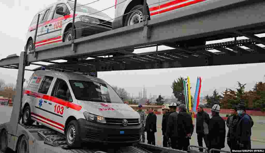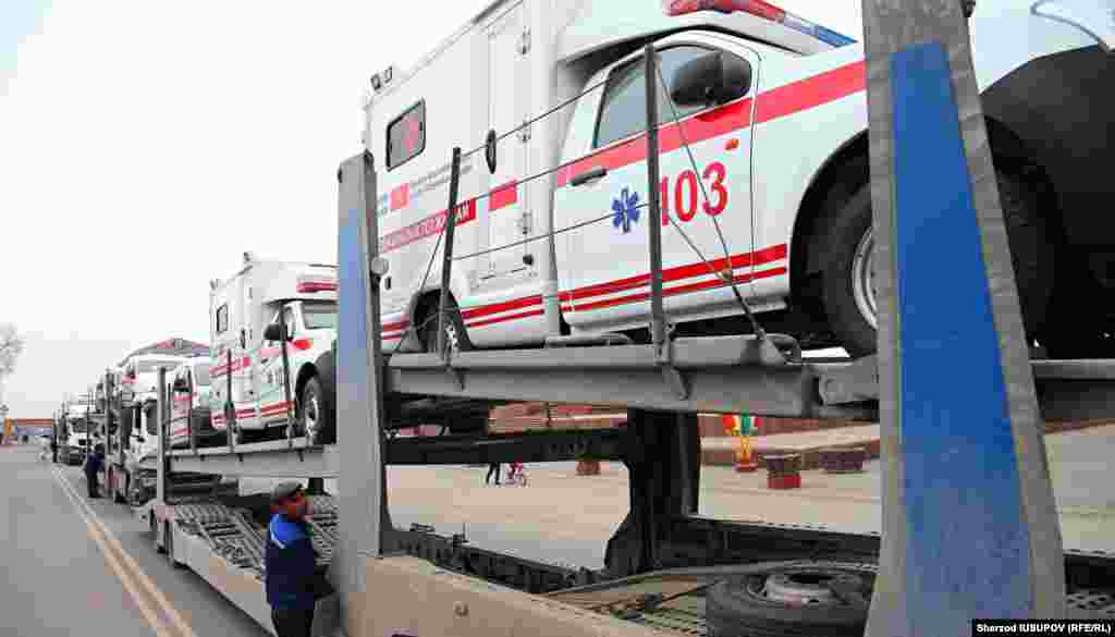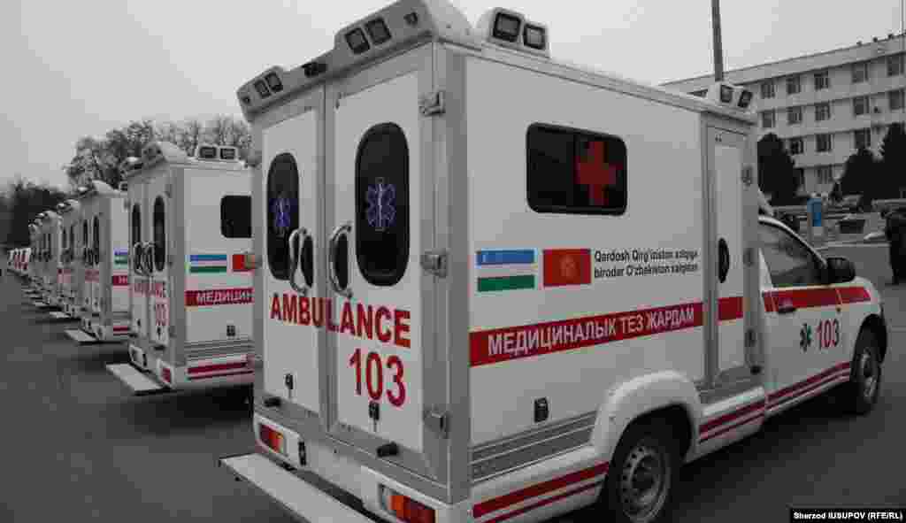 Ўзбекистон Қирғизистонга совға қилган 20 та тез ёрдам машинаси Ўш шаҳрига олиб келинди