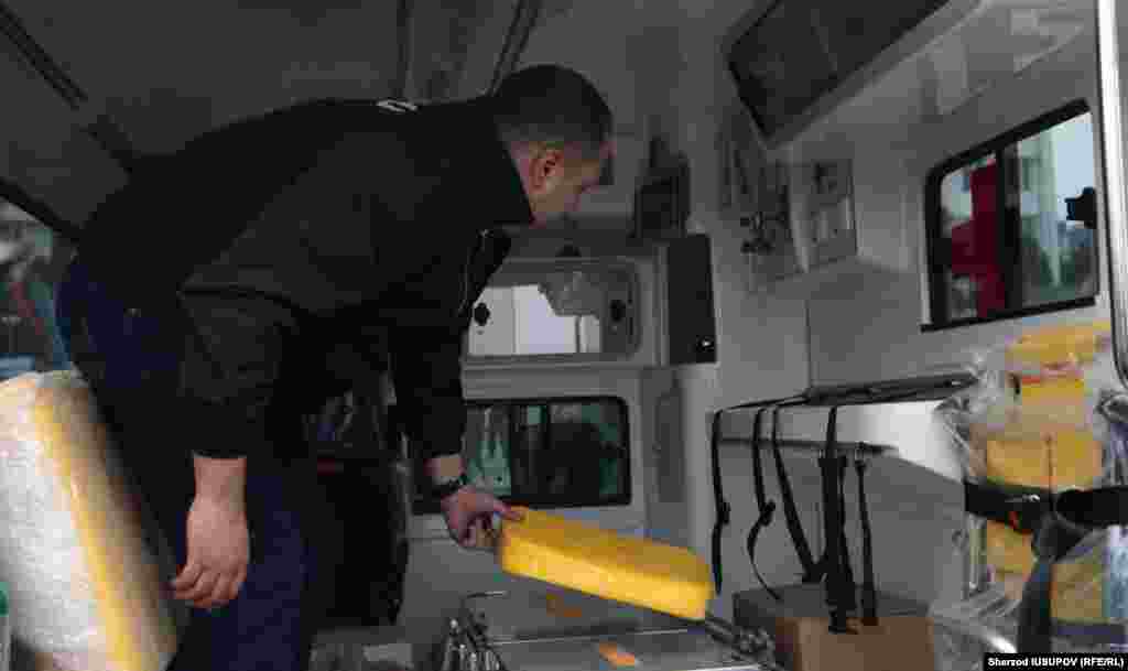 Тез ёрдам автомашиналарини Ўш шаҳри марказий майдонида Қирғизистон расмийларига Ўзбекистон номидан Андижон вилояти хокими ўринбосари Ботир Хамроев топширди.