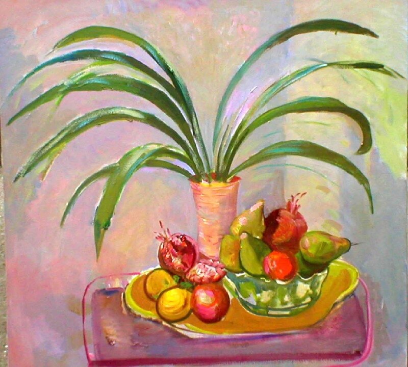 “Эрталабки натюрморт” Мато, мойбўëқ. 2005 йил. Асар қуëш нурларининг оддий буюмлар ташқи қиëфасини ўзгартирганига мисолдай кўринади. Асар француз импрессионизмидан таъсирланиб яратилган.
