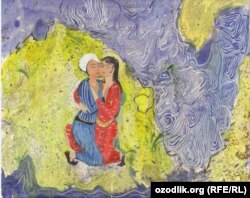 “Лайли ва Мажнун” 1999 йил. Қоғоз, сувбўëқ. Рассом шарқ миниатюрасидан таъсирланиб, бир неча туркум суратлар яратди. Бу асар ана шу туркум суратлардан бири. Суратнинг фони абру баҳор технологиясида яратилган.