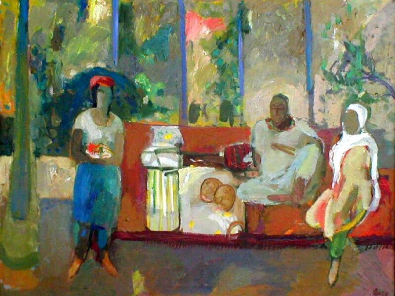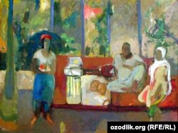 “Оила” 1985 йил. Мато, мойбўëқ. Бу асар ҳам рассомнинг Москва даврига мансуб бўлиб, символизм йўналишида яратилган. Асар катта монументал панно учун эскиз деб ҳам тақдим қилинган. 1985 йилда Москвадаги Ўзбекистон ваколатхонаси янги биноси қурилганида, ўша бинони безаш учун конкурс эълон қилинганида, бу эскиз ҳам иштирок қилган, аммо қабул қилинмаган.
