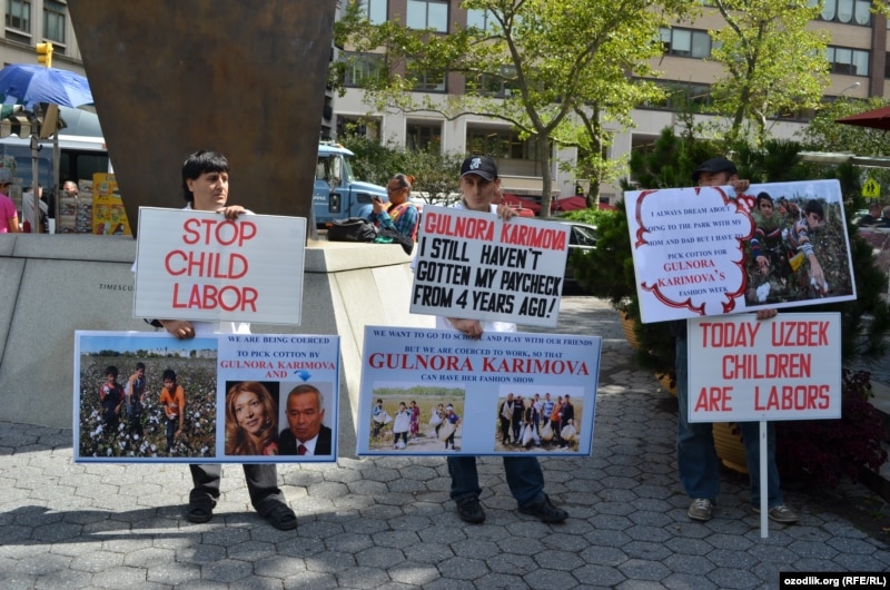 Пайшанба ва жума кунлари Ўзбекистон халқ ҳаракати фаоллари ва болалар ҳуқуқлари учун курашувчи ташкилотлар Ню Йоркда Гулнора Каримованинг Мода ҳафталигида қатнашаётганига қарши намойиш ҳам ўтказган эди.