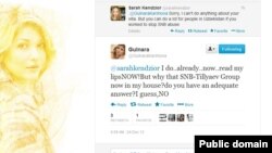 “... Лекин СНБ-Тиллаев гуруҳи нима учун ҳозир менинг уйимда? Бунга бирор аниқ жавобингиз борми? Тахмин қиламанки, йўқ!” мазмунида твит қолдирди @GulnaraKarimova.