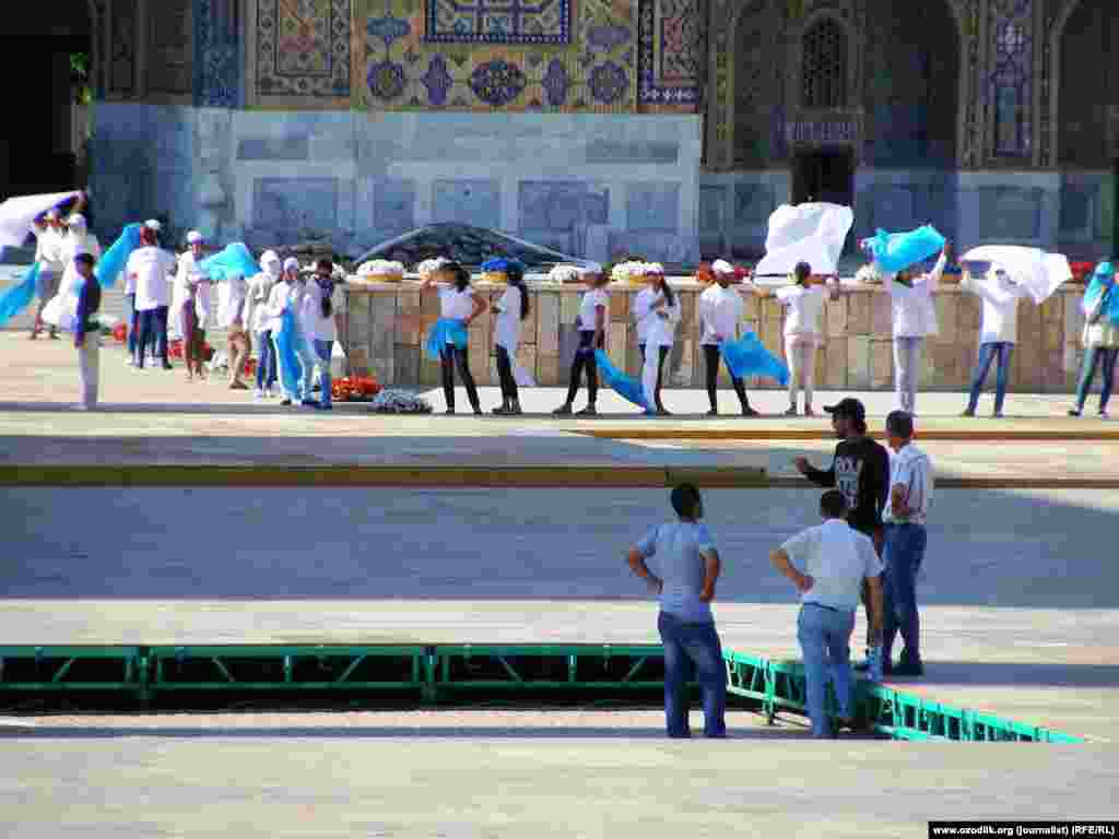 Ҳар икки йилда бир марта Самарқанднинг Регистон майдонида ўтказиладиган Шарқ тароналари мусиқий фестивали 25-30 август кунлари бўлиб ўтиши режалаштирилган. Фестивалга тайëргарлик июн ойидан бошлаб юборилган. Чироқлар ва бошқа ускуналарни бошқариш учун профессионал мутахассислар томонидан фундаментлар атрофидан чуқур қазилиб¸ кабеллар ўтказилмоқда. Регитон майдони сайëҳлар учун 11дан 15гача очиқ. Репетицияга ҳамма¸ ҳатто раққосалар ҳам тинтувдан ўтказиб¸ кейин қўйилади. Телефон олиб кириш мумкин эмас.