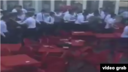 Лицейдаги оммавий муштлашув пайти мобил телефонига ёзилган видео тасвир Озодликка етиб келди. Тасвирда ўқувчиларнинг лицей ошхонасидаги пластмасса стол ва стулларни бир-бирига отаётганини кўриш мумкин.
