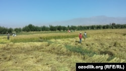 “Ҳозир менинг ҳосилимдан учдан бир қисми қолиб кетган. Бошқа шолипояларда ҳам тахминан шунақа вазият. Уч кундан бери ёмғир тўхтамай ёғяпти. Ҳеч бўлмаса йиғиб олаqлик десак, қўйишмаяпти. Фермер қарзини узсин олдин, дейишяпти. Шоли сувда қолиб кетиб, увол бўладику”, дейди деҳқон.