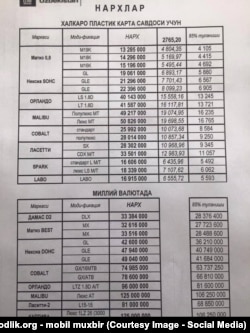 Ижтимоий тармоқ фойдаланувчилари автосалонларда берилган янги нархлар рўйхатини ҳам нашр этдилар.