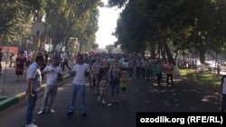 Истироҳат боғлари дарвозаларига посбонлик қилаётган “Камолот” ёшлар ижтимоий ҳаракати фаоллари тарафидан халқ сайлларига келган ҳар бир кишининг кўксига Ўзбекистон байроғи акс этган ленталар тақилди.