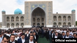 Кейин Регистондаги жаноза намозини кўрсатишди. Бундай маҳобатли жаноза маросимини, мутлақо ўринсиз бўлса ҳам айтай – бундай кўркам жаноза маросимини кўрган эмасман. Саросима сезилмади. Ҳар кимнинг ўз ўрни бор: оқ кўйлаклилар бир саф, дўппилилар орқада.