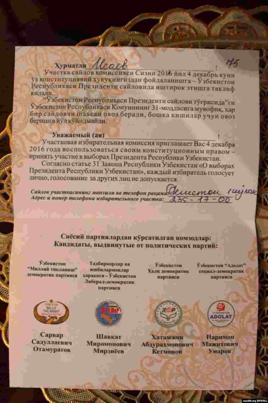 Самарқандлик сайловчилар президент сайловида иштирок этди