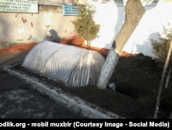 У юборган фотосуратда мактаблардан бирида лимонарий учун ер қазилаётганини кўриш мумкин.