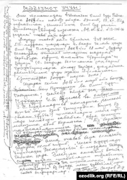 Унда маҳкум Ўзбекистон Республикаси Бош прокурори Ихтиёр Абдуллаев ва Ўзбекистон Республикаси Олий Мажлисининг инсон ҳуқуқлари бўйича вакили Улуғбек Муҳаммадиев номига йўллаган шикоят хатлари ўз манзилига етиб бормаганини айтган.