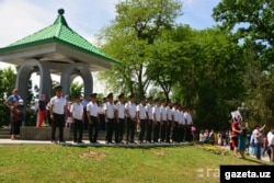 Gazeta.uz сайтида чоп этилган суратларда "Шомаҳмудовлар оиласи" мемориал комплекси қошида чиқиш қилаётган кексалар, рақс тушаётган раққосалар акс этган.