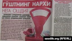 Гўшт нархи ошишига “Даракчи” нашри ҳам эътибор қаратган. Қассобларнинг газетага маълум қилишича, Тошкентга вилоятлардан мол олиб кириш қийин бўлаётгани ва ем-хашак нархи кўтарилгани қимматлашувга сабаб бўлган. Аммо газета гўшт нафақат Тошкент, балки мамлакат вилоятларида ҳам ошганини қайд этган.