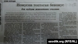 Самарқанд вилояти Тайлоқ туманида яшаган қиз номуси топталгани боис ўз жонига қасд қилди (“Постда”, 15 июль). Тергов-суриштирув жараёнида Пастдарғом тумани Кичик Найманча қишлоғида яшайдиган фуқаро Б. Жаҳонгир қизнинг номусини топгани аниқланган. Марҳуманинг қариндошига унаштирилган Б. Жаҳонгир алдов йўли билан қизни уйидан чақириб олиб, кимсасиз тутзорда уни бир неча бор зўрлаган. Номусига чидолмаган қиз уйига қайтгач, қўшнисининг оғилхонасига кириб, ўзини осган. Жиноятчи қилмишига яраша жазога тортилгани хабар қилинган.