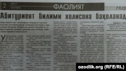 Фарғона политехника институти механика факультети декани 7000 доллар пора билан қўлга олинди (“Ҳуқуқ”, 20 июль). Шу факультетда котиба бўлиб ишлайдиган абитуриент қиз ўқишга кириш борасида декандан йўл-йўриқ сўраган. Исми ошкор этилмаган декан эса ўқишга киритиб қўйиш эвазига 7000 доллар пора сўраган. Абитуриент қизнинг аризасига кўра ўтказилган тезкор тадбирда декан пора устида ушланган. “Олий таълим даргоҳларига кириш учун тест синовларининг натижаларига ҳеч ким, ҳеч нарса таъсир ўтказа олмайди. Абитуриентнинг билими холисона баҳосини олади”, деб ёзади Бош прокуратура нашри.