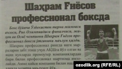 Бокс бўйича Ўзбекистон терма жамоаси аъзоси, Рио олимпиадаси кумуш медали совриндори, жаҳон ва Осиё чемпиони Шаҳрам Ғиёсов профессионал боксга ўтганини маълум қилди (“Оила даврасида”, 14 декабрь). Шаҳрам профессионал рингда янги марраларни забт этиш учун АҚШга йўл олган ва яқин кунларда промоутер компанияларидан бири билан профессионал шартнома имзолайди. Аммо қайси компания билан ишлаши ҳозирча аниқ эмас. Эслатиб ўтамиз, Осиё бокс конфедерацияси куни кеча Шаҳрам Ғиёсовнинг 2017 йилда қитъанинг энг яхши боксчиси, деб эълон қилди.