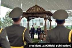 Ўзбекистон Президенти Шавкат Мирзиёев Тошкентдаги Кўксарой қароргоҳида Туркманистон президентини кутиб олди.