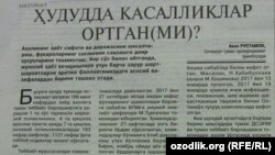 Андижон вилояти Олтинкўл туманида ўтган йили бир ёшгача бўлган болалар ўлими ортди (“Ҳуқуқ”, 24 май). 2017 йили ҳудудда 2 нафар она ва 55 нафар бола ўлими қайд этилган. Туман прокурори ўринбосари Аваз Рустамовга кўра, чақалоқларнинг 18 нафари пневмония, 10 нафари туғма нуқсон, 22 нафари бошқа сабаблар билан вафот этган. Масалан, Н.Ҳабибуллаев ҳомила ички инфекцияси, пневмония ва мия ишемик шикастланишидан олти кунлигида нобуд бўлган. Аҳоли ўртасида юқумли касалликларга қарши кураш бўйича чоралар ҳам самара бермаган. Биргина вирусли гепатитнинг “А” тури 43,8 фоизга ортган. Болалар ўлими ва юқумли касалликлар ортиши сабаблари очиқланмаган. Қайд этилишича, тиббиёт тизимида аниқланган қонун бузилишлари юзасидан прокурор назорати чоралари қўлланган.