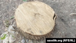 Кесилаëтган дарахтларнинг соғлом экани қайд қилинган хабарга 16 октябрь кунги дарахт кесиш манзараси акс этган фотожамланма ҳам илова қилинган.