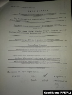 OzodMikrofon рукнига боғланган Қурбоновнинг даъво қилишича, вилоятдаги қатор суд инстанциялари етказилган моддий зарарни унинг фойдасига қоплаш ҳақида ҳукм чиқарган, аммо ҳукм ижро қилинмаган.