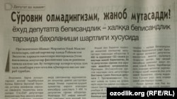 Газетага кўра, депутатга беписандлик халққа беписандлик деб баҳоланиши ва масъул мансабдорларни жазолаш механизми ишлаб чиқилиши керак.