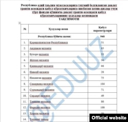 2020 йил 4 февралдаги ҳужжатга мувофиқ, Тожикистон, Қирғизистон ва Қозоғистонда ўқиётган ўзбекистонликларга ўқишини имтиҳонсиз Ўзбекистонга кўчириш имконияти берилган.