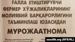 Ўзбекистондаги ғалла етиштирувчи фермер хўжаликлари парламент ва ҳукуматга мурожаатнома йўллади (“XXI аср”, 3 октябрь). Қайд этилишича, давлат хариди бўйича ғаллага паст нарх белгиланиши фермер ва дон корхоналарига иқтисодий зарар келтирмоқда. “Фикримизча, давлат харидлари бўйича фермерларнинг ғалласига паст нарх белгилаб, унинг арзон баҳода сотилиш механизми фермерлар ва дон корхоналарига иқтисодий манфаатдорлик келтирмайди. Уларни ғалла ҳосилдорлигини оширишга рағбатлантирмайди”, дейилади мурожаатномада.Шу сабаб, парламент ва ҳукуматдан ривожланган давлатлар тажрибасини чуқур таҳлил қилган ҳолда, республикада ғаллага харид нархи белгилаш амалиётидан босқичма-босқич воз кечиш сўралган. Айни пайтда, фермер хўжаликлари, дон корхоналари ва истеъмолчилар ўртасидаги иқтисодий муносабатларни бозор механизмига ўтказиш зарурати таъкидланган.