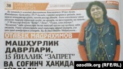 Ўз даврида эстрада хонандаси сифатида шуҳрат қозонган, аммо “қора рўйхат” сабаб катта саҳнани тарк этишга мажбур бўлган Отабек Мадраҳимов кўп йиллик танаффусдан кейин илк бор матбуотига интервью берди (“Даракчи”, 30 январь). Хонанда ўзининг юлдузли дамлари билан бирга ижодига қўйилган тақиқ ҳақида ҳам гапирган. Унинг айтишича, “запрет” сабаб бир неча марта концертлари бекор қилинган, саҳна ва телеэкрандан четлаштирилган. Оз эмас, 15 йил давом этган тақиқ сабаб у оиласи билан АҚШга кетишга мажбур бўлган. “Бу ерга келганимга 6 йил бўлди... Бутунлай бегона бўлган жойга келиб, ҳаммасини бошидан бошлаш, оёққа туриш осон бўлгани йўқ”, деган О. Мадраҳимов. Хонандага кўра, у қўшиқ айтишни тўхтатгани йўқ, ҳамон ўша қозонда қайнамоқда.