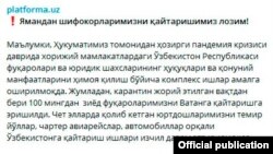 Маълум бўлишича, Қонунчилик палатасининг бир гуруҳ депутатлари томонидан шифокорларни қайтаришда ёрдам бериш масаласида ҳукуматга сўров юборилган.