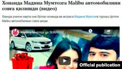 Яқинда учинчи марта она бўлган хонанда ва актриса Мадина Мумтозга эса турмуш ўртоғи Malibu автомобилини совға қилгани маълум бўлди.