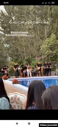 Андижондаги хусусий бу тадбир ҳақида Муниса Ризаева ўз Instagram саҳифасида сурат ва видеоларни улашди.