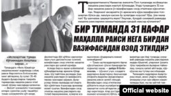 Наманган вилояти Поп туманида бирданига 31 нафар маҳалла раиси ўз вазифасидан озод этилди (“Маҳалла” газетаси, 1 октябрь).