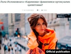 “Лола Исломовнага “Каримова” фамилияси ортиқчалик қиляптими?” дея савол қўяди интернет нашр.