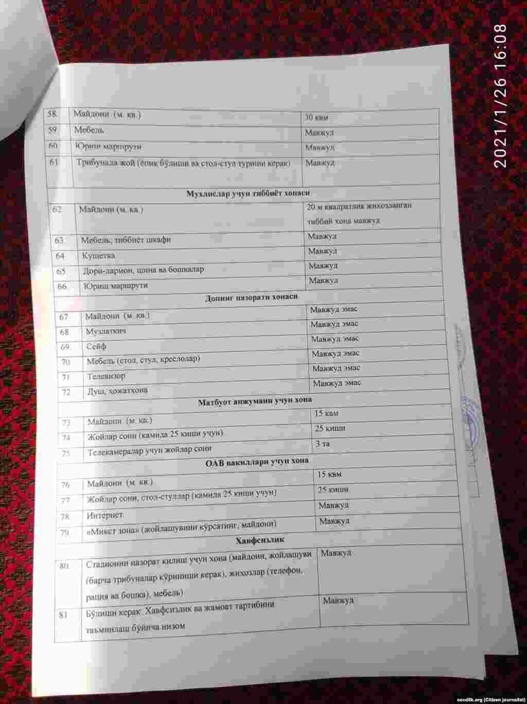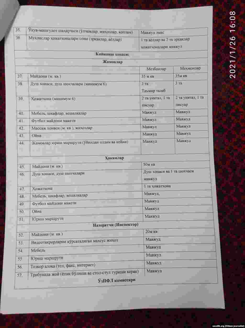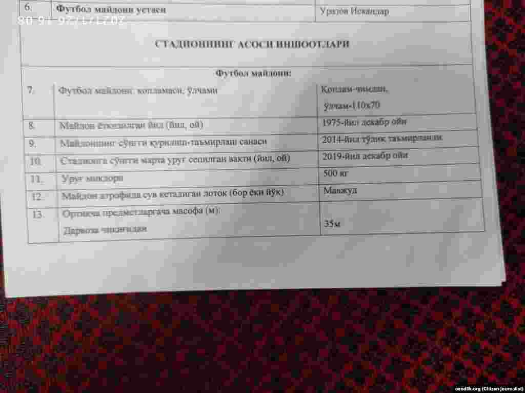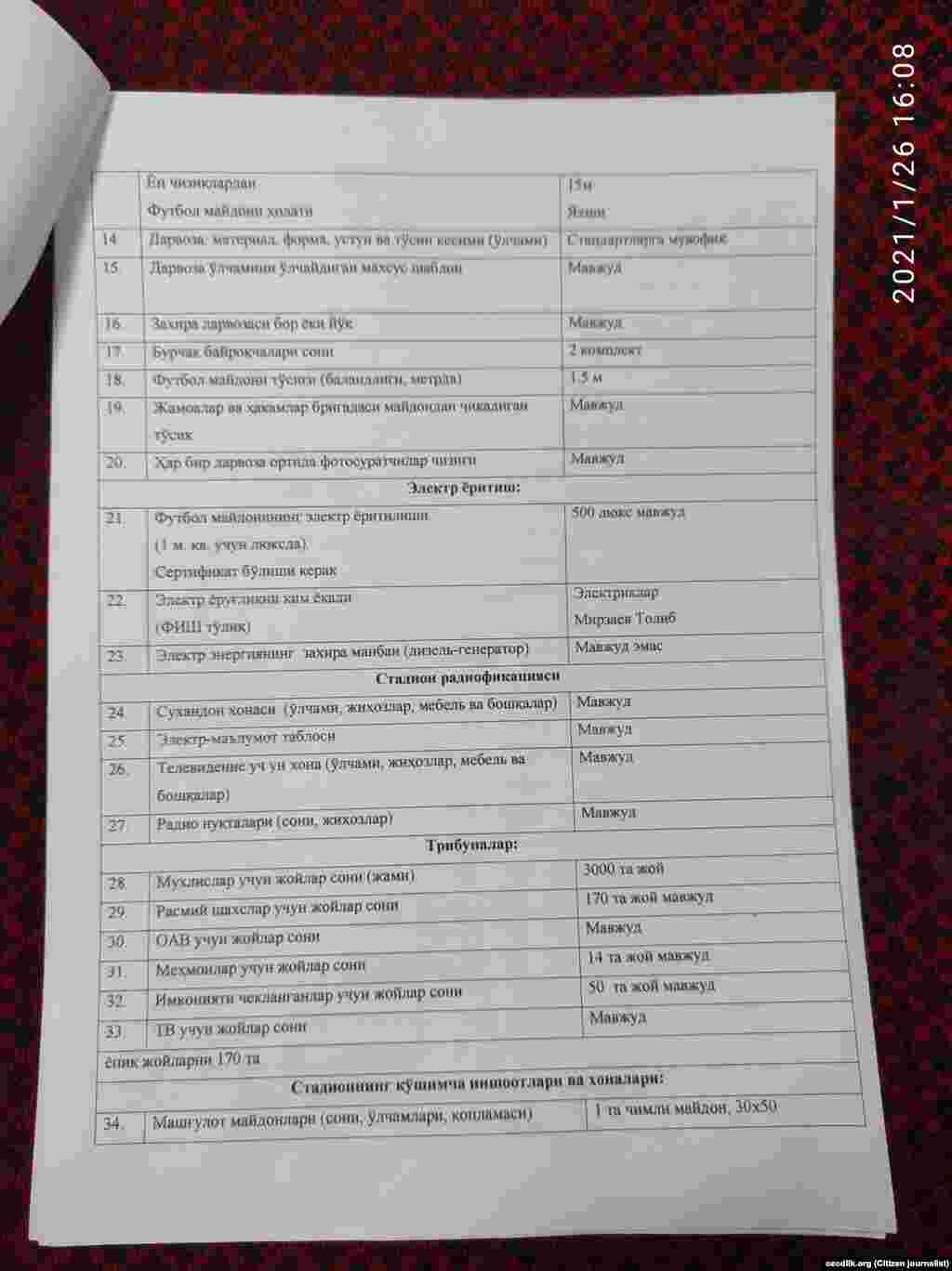 "Кимёгар" спорт мажмуасига доир ҳужжат