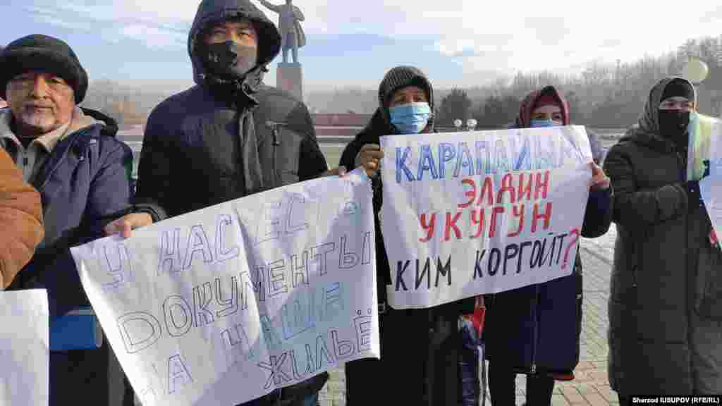 Ўш шаҳри марказидаги Тешиктош мавзеида жойлашган 23та уйда яшовчи бир юз эликка яқин одам бир неча асрдан бери авлоддан авлодга мерос бўлиб келган уй-жойлари Нурқул Ширдақов деган тадбиркор томонидан тортиб олинаётганига норозилик билдириб, намойишга чиқди.