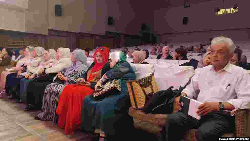 Шоирнинг қизи Шоира Орипова театр директори Аъзам Абдураззоқовга миннатдорчилик билдирмоқда.