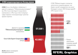 «Coca-Cola Ichimligi Uzbekiston, Ltd» аҳолиси қарийб 35 миллион кишилик Ўзбекистонда алкоголсиз ичимликлар бозорининг деярли ярмини назорат қилади. Бу компаниянинг 57.1 фоиз улуши кимга ўтса¸ бозорнинг асосий хўжайини ҳам шу бўлади.