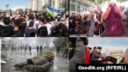 • Лиқ тўла майдон, минглаб одам йиғилган тинч намойиш, сўнгра яна ўқотар қурол овози, қизилга бурканган ерлар, ўнлаб қурбон - Қорақалпоғистон, ёз.