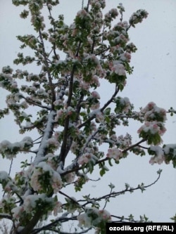Qiyg‘oc gullagan mevali daraxtlar kuchli qor va sovuq natijasida o‘z hosilidan ayrildi.
