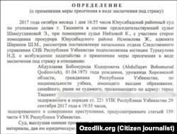 Дастлабки тергов хулосасига кўра¸ журналист Бобомурод Абдуллаев Усмон Ҳақназаров тахаллуси билан Интернетда мавжуд конституциявий тузумни ағдаришга қаратилган материалларни тарқатиш йўли билан ҳокимиятни қонуний сайланган шахслардан тортиб олишни режалаган. Дастлабки тергов хулосасига асосланган Жиноят ишлари бўйича Юнусобод туман суди 1 октябрь куни Абдуллаевни 10 кун МХХ ҳибсхонасида сақлаш ва шу муддат ичида унга қарши жиноий иш очиш ҳақида қарор чиқарди.