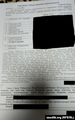 Прокуратура қилган ёзма савол-жавобнинг Озодликдаги