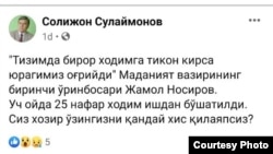 Keyingi bir necha oydan buyon Mamlakat Bo‘ronova faoliyati haqida ijtimoiy tarmoqlarda tanqidiy postlar ko‘paygan.