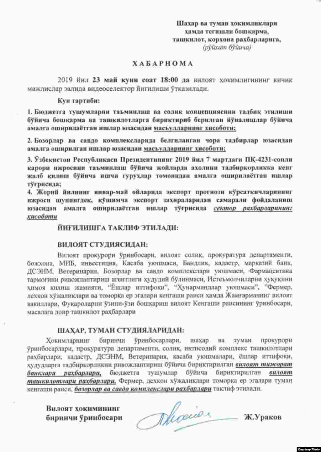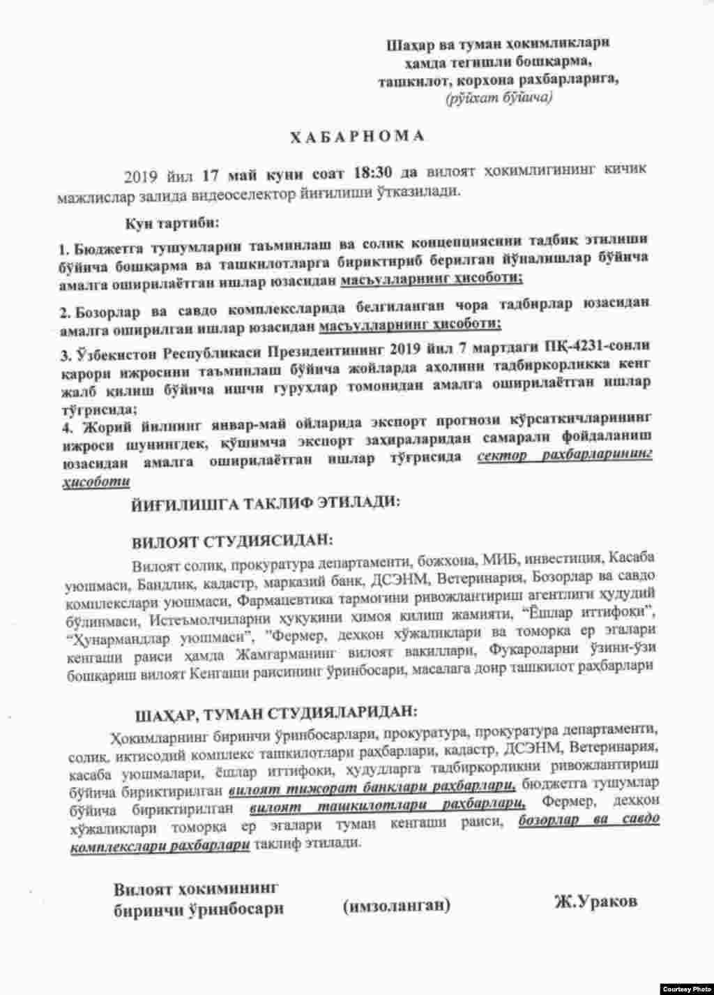 Мажлисбозлик хроникаси: Самарқанд вилоят ҳокими ўринбосари юбораëтган мажлис чақирувлари