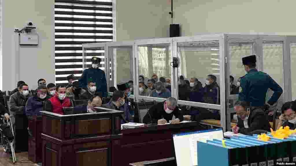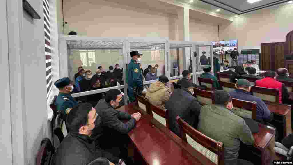 Бухоро вилоят судида 2022 йил 1-2 июль кунлари Нукус шаҳрида содир этилган оммавий тартибсизликлар бўйича 22 нафар судланувчига оид жиноят ишини кўриб чиқиш бўйича очиқ суд жараёнидан фотосуратлар.
