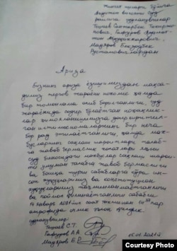 Улар уч судланувчининг очлик эълон қилгани қайд этилган ариза нусхасини ҳам Озодликка тақдим қилишди.
