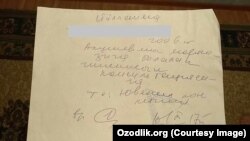 Бу аёл набирасининг соғлигига оид мавжуд тиббий маълумотномалар нусхасини Озодликка тақдим қилди:
