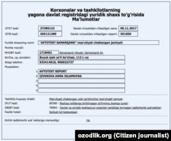 Озодлик: Ҳужжатларга қараганда, "Аvtotest-Report"нинг Самарқанддаги филиали эмас, алоҳида МЧЖ ку?