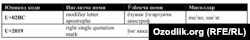 Айримлар эса, ўнг якка қўштирноқ (Юникод коди U+2019) ишлатади: o’zbek, ma’no.