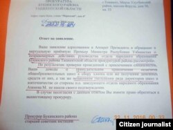 Ҳуқуқ ҳимоячисининг айтишича, Вазирлар Маҳкамаси мулозими Юсупов Чиноз туман прокурори вазифасини бажарувчи Маҳмудовнинг жавоб хатини кўргач, бу хатнинг ҳуқуқ ҳимоячилари қўлига тушиб қолганидан жуда ҳайрон бўлган